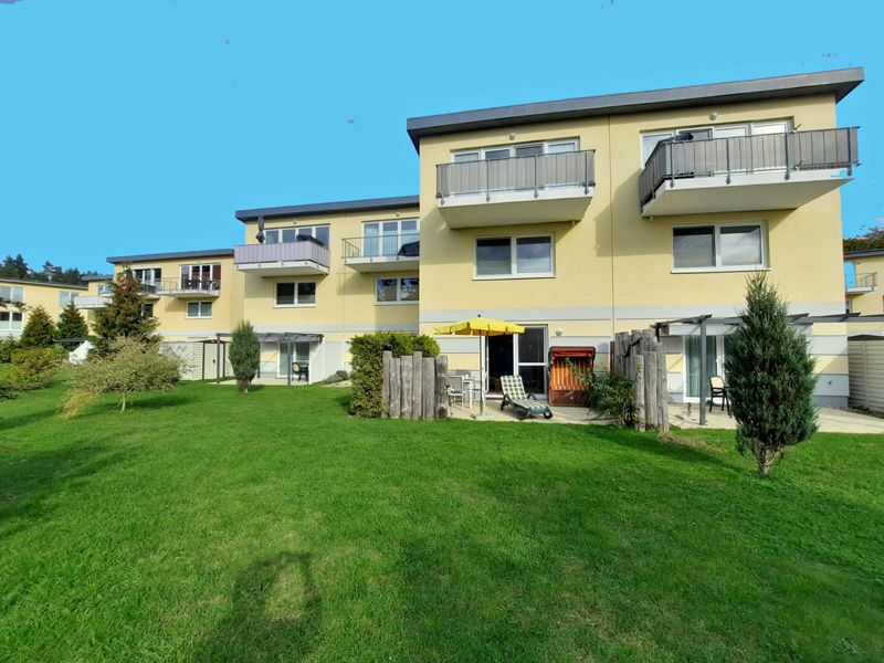 Die Wohnung verfügt über eine Terasse mit angrenzender kleiner Grünfläche. Für Sicherheit sorgt hier auch ein transportabler Hundezaun.