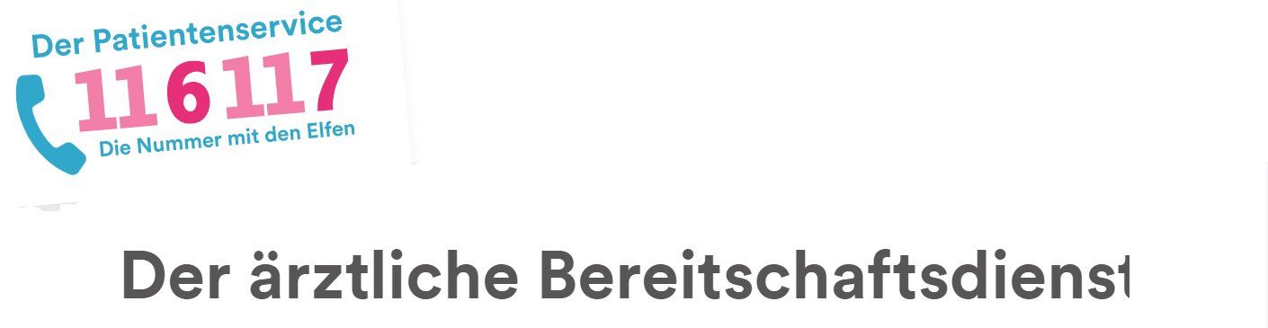 Sie können entweder direkt eine geöffnete Bereitschaftspraxis in Ihrer Nähe aufsuchen oder die 116117 wählen. Die Mitarbeitenden der 116117 kennen Ärzte in Ihrer Nähe oder schicken bei Bedarf einen Arzt zu Ihnen nach Hause. Sie erhalten die ärztliche Hilfe, die Sie brauchen.